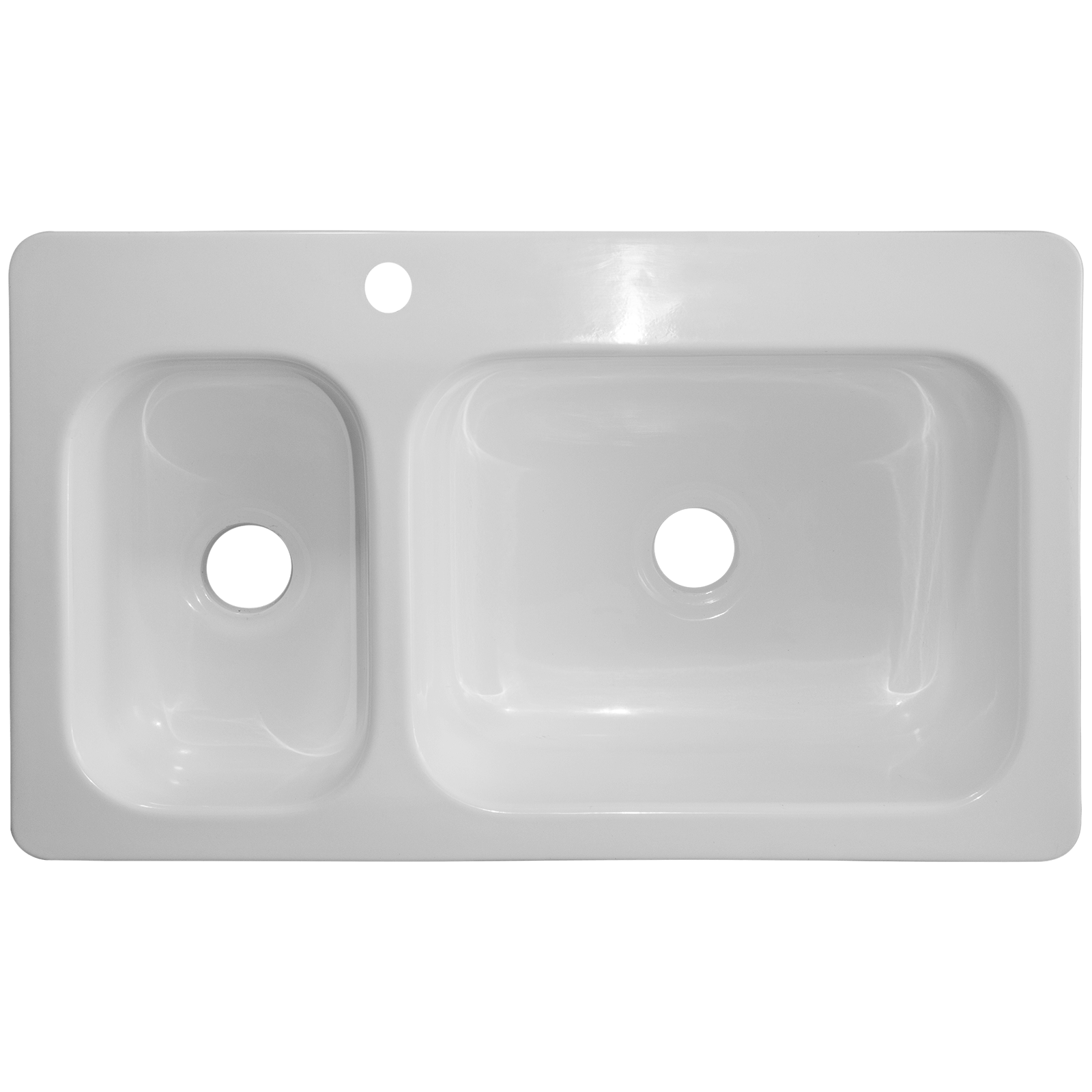 Lavaplatos Doble de sobreponer. Tiene un diseño de pestaña que divide los dos bowls amplios. Se caracteriza por su practicidad, diseño limpio y durabilidad. Se pueden instalar fácilmente sobre mueble o mampostería.